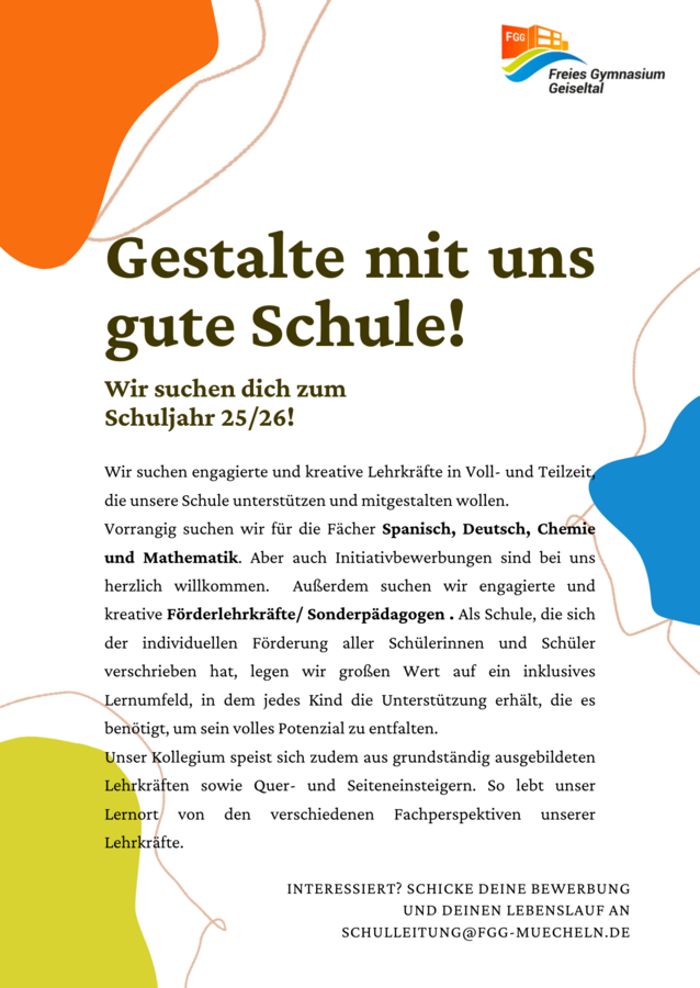 Ihre Anfragen und Bewerbungen senden Sie bitte an: schulleitung@fgg-muecheln.de